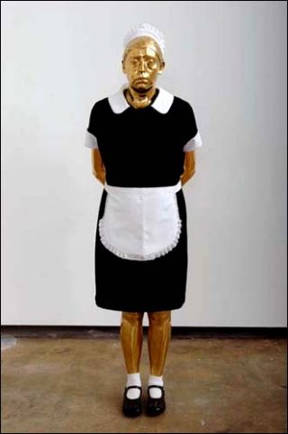 — Rosa, 2006. Laiton doré, acier, fibre de verre, epoxy, vêtements, chaussures. 153 x 46 x 44 cm