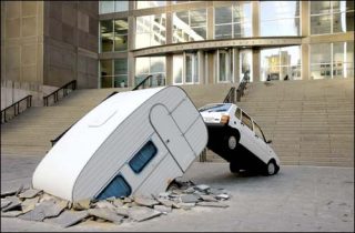 — Social Mobility, 2005. Aluminium, bois, isopor, acier, béton. 430 x 700 X 200 cm
