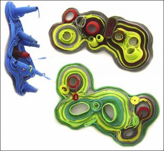 Je suis fascinée par le travail du bois, peut-être parce que je suis issue d’une famille dans laquelle le bois occupe une place importante. J’ai par exemple un parent qui a construit sa maison complètement en bois et a fabriqué tous les meubles qui la remplissent avec du bois. Alors en entrant aux Beaux-Arts, je me suis naturellement dirigée vers l’atelier « bois », mais pour toutes sortes de raisons, liées aux méthodes d’enseignement, et aussi du fait d’une certaine maturation personnelle, je me suis orientée vers d’autres formes de sculpture. Dans la mesure où la société, grâce à la sophistication et au constant progrès de ses technologies, produit en masse des matériaux bon-marchés, il me semblait intéressant de jouer de ce paradoxe : utiliser ces matières issues de l’hyper-technologie pour « faire à la main », dans une démarche artisanale, des objets uniques qui soient précisément le reflet de cette modernité. Récupérer les matériaux d’usages courants les plus familiers et les moins nobles de la modernité pour les transformer artisanalement, voilà ma façon de réfléchir sur la société et de prendre le contre-pied de sa fièvre de rendement.