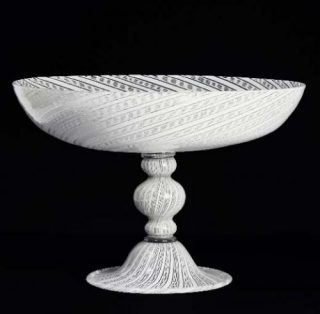 En regard de la création de Jeremy Maxwell Wintrebert sera exposée également une pièce vénitienne datant de la seconde moitié du XVIe siècle. C’est une «Tazza» à décor de fili et retortoli blanc d’une grande virtuosité, confiée par Sylvie Lhermite King, expert en verre de Venise et façon de Venise, installée dans le Carré Rive Gauche depuis 2006. L’occasion de rapprocher deux Å“uvres en filigrane et d’apprécier ainsi la métamorphose de cette technique séculaire, toujours vivante dans les arts décoratifs contemporains qui ont su l’adapter aux recherches modernes. Le filigrane, comme le fil de soie qu’on déroule du cocon, se fait autre et dévoile les possibilités renouvelées de création.