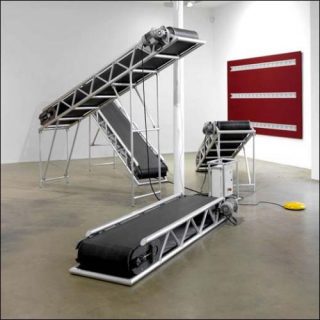 — Fliessband, 2008. Aluminium, caoutchouc, acier, moteurs. Dimensions variables.