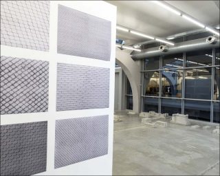 L’œuvre de Laura Mietrup, un tapis réalisé en bandes de bitume tressées, témoigne d’un travail de prélèvement des motifs, matières et objets urbains. A travers la déconstruction, le déplacement et le réagencement s’élabore un nouveau langage.