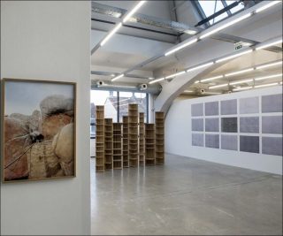 La série de quinze photographies de Johanna Broziat, intitulée Münchhausen, 2015-2016, présente sous forme de posters des ensembles géométriques qui sont en fait des détails de bardages recouvrant des façades de maison. Ces éléments d’architecture isolés pour devenir des motifs graphiques sont représentatifs de la façon dont Johanna Broziat s’inspire des caractéristiques matérielles et formelles des espaces qu’elle investit.
