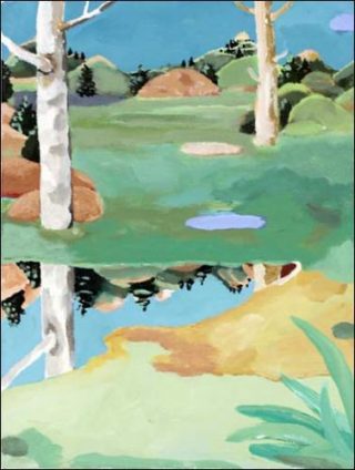 Emotionnellement distants et d’un cool insaisissable, les personnages de Brian Calvin communiquent la banalité de la culture selfie; et comme ceux-ci, ils s’échappent de toute trame narrative. Artiste d’origine californienne, Brian Calvin est parfois comparé à David Hockney, dont les couleurs et les œuvres évoquent de façon menaçante la vie facile des zones pavillonnaires blanchies par le soleil. Il est aussi souvent comparé au newyorkais Alex Katz dont les peintures graphiques et plates sont visuellement similaires à celles de Brian Calvin, bien qu’elles évoquent des trames narratives plus complexes.