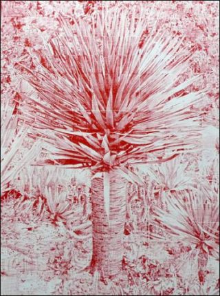 Et, par-dessus tout, omniprésence des tracés de mise au carreau, mais aussi de la trame et de la grille jusqu’au moucharabieh, quadrillage qui devient le moyen et la finalité d’imprévisibles jeux de division. Assurément donc, une histoire de dit et de vision.