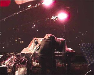 On voit de dos un DJ, qui mixe seul sur un toit, la nuit, sous la pluie et sous les feux d’artifice du premier janvier. Le son qu’il produit est mêlé aux explosions, dont le bruit très fort évoque celui de la guerre et qu’il a l’air de diriger.