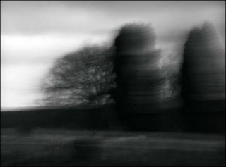 Les photographies en noir et blanc sont consacrées à des paysages ou des éléments naturels isolés. Les effets de mouvement, de vitesse et de flou sont largement exploités: ligne d’arbres défilant comme derrière la vitre d’un train, paysage nocturne rendu indiscernable par l’obscurité et l’imprécision de ses contours. Brouillant nos repères, ces clichés renforcent un sentiment d’incertitude dans notre perception du monde.