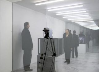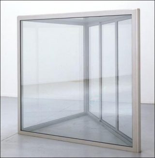 Chacune des Å“uvres de Dan Graham implique la participation du spectateur pour remettre en question les codes perçus comme des stéréotypes. Avec l’installation Two viewing rooms, la vidéo questionne les mécanismes de la perception et le rôle du spectateur dans l’art et la société. Triangle Pavilion se compose de trois parois, à la fois vitres et miroirs, avec une porte coulissante qui laisse entrer le spectateur: l’œuvre propose une expérience esthétique qui joue des reflets, de la réflexion de la lumière et de la démultiplication des espaces. Ces Å“uvres obligent le spectateur à prendre position: il est tour à tour et simultanément celui qui voit et celui qui est vu.