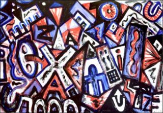 Pour la plupart, ces nouvelles compositions sont beaucoup plus complexes, intégrant en leur sein toute la dualité de la démarche de Penck, les représentations expressionnistes et désordonnées de ses émotions se mêlant à une iconographie didactique, minimale et radicale, issue de ses théories picturales. Ainsi, dans le tableau qui donne son nom à l’exposition, «le feu de l’expression impulsive et le froid de la construction se confrontent» comme l’artiste le souligne lui-même.