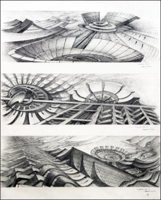 Pour son exposition «Entre utopie et réalité», Claude Parent choisit de présenter une cinquantaine de dessins, d’innombrables visions utopiques dont la récurrence des thèmes (mouvement, migration, déroulement, spirale) se retrouve également dans l’œuvre construite.