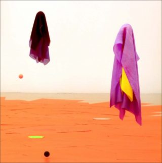 Investissant la hauteur, des morceaux de soie arborant chacune une teinte différente dans les tons de rouge et d’orangé, recouvrent des sphères suspendues. Elles évoquent de vagues silhouettes, déploient la couleur dans l’espace et se meuvent au moindre déplacement d’air. Ainsi se travaille la couleur dans l’œuvre de Didier Mencoboni : telle une matière que l’on sculpte.