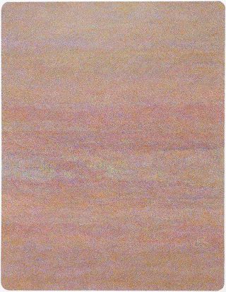 Des galets à moitié peints jouxtent la surface colorée. Ramassés depuis les années 1980 lors de promenades en bord de mer, ces morceaux de granit symbolisent une gravité. Ils forment un contrepoids au foyer irradiant de couleur orangée que rien ne semble pouvoir empêcher de s’élever, et qui quitte la surface pour atteindre le volume et la légèreté aérienne. Peints en bleu, les galets équilibrent l’ensemble.