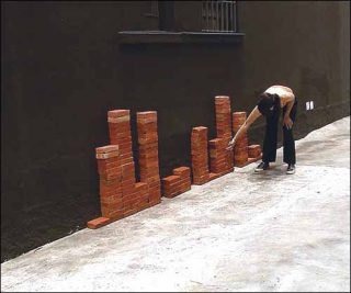 L’invention typographique est au cœur du processus créatif de Angela Detanico et Rafael Lain, qui détournent une règle établie au profit d’une signalétique codée à déchiffrer. Ainsi, l’entrée de la galerie est occupée par des piles de ramettes de 500 feuilles emballées sous papier kraft. Cette accumulation minimaliste, qui pourrait faire penser à une zone de stockage, constitue en fait une écriture «concrète» : chaque lettre correspond à un nombre donné de ramettes (un bloc pour A, deux pour B et ainsi de suite de manière croissante), plus la lettre se rapproche de la fin de l’alphabet plus la hauteur de la pile est importante.