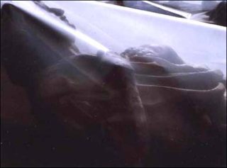 Le mot est à entendre dans un sens hiératique et non pas religieux. Même si les œuvres photographiées sont votives, elles font aujourd’hui plus appel à notre spiritualité qu’à notre religiosité. La résurrection est aussi végétale, les oeuvres sont comme des bourgeons prêts à refleurir. Les statues de pierre photographiées, sortes de stèles de la disparition, sont recouvertes d’un sarcophage de cellophane. L’hymen protecteur ressemble aux tombeaux de Mariko Mori ou aux sacs plastiques de la morgue, c’est au choix. Promesse d’un au-delà ou d’une fin irrémédiable, les sept photographies de l’exposition ne tranchent pas et laissent planer le doute.