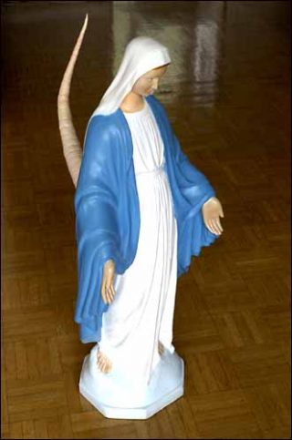Par exemple la série des petits mots, c’est une correspondance impossible, ou quasiment impossible. Ou encore la Vierge avec une queue, qui en l’occurrence est un symbole d’une espèce de bien sur la terre qui est rongé de l’arrière par le mal, c’est aussi une figure de l’impossible, et il va y avoir un caisson lumineux qui va s’appeler « L’hôpital Marquis de Sade », c’est un hôpital impossible, jamais on ne verra un hôpital qui s’appellera comme ça. Il y aura également une corde à sauter, la corde sera en fait du fil barbelé, et c’est pareil, enfin voilà , il y a cette notion d’impossible.