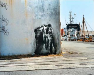 Le même croisement entre passé et présent, entre réalité et fiction, est à l’œuvre dans les images qu’Ernest Pignon-Ernest appose dans des cabines téléphoniques à Lyon et Paris. Ces images reprennent des figures archétypales de l’histoire de l’art pour en faire les représentations de l’humanité moderne, urbaine et accablée par la solitude.
