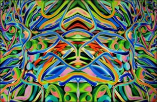 La série composée de grandes toiles peintes à l’huile présente des formes abstraites imitant des matières organiques végétales. Des fibres et des sphères colorées s’entremêlent dans une configuration parfaitement symétrique, plane ou plus aléatoire.