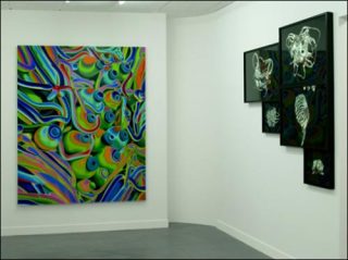Alors que l’ordinateur tend à remplacer la création manuelle, ces toiles obéissent à une pratique inverse: l’artiste fabrique un modèle en trois dimensions, le photographie, scanne l’image et la colore à partir du spectre chromatique informatique, avant de la reproduire en peinture.