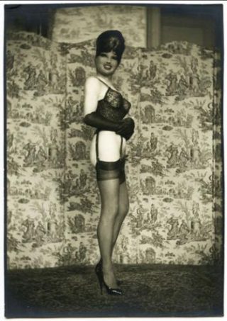 Pierre Molinier reprend à son compte le thème de l’autoportrait, mais dans une tonalité totalement différente puisqu’ici, son corps est travesti, habillé, entouré d’accessoires, et photographié dans une mise en scène plutôt sophistiquée.