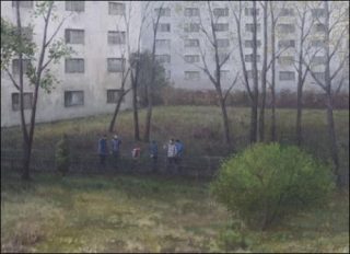Il y a une ambiance particulière dans ce travail dans lequel sont souvent représentées des situations d’action: le réconfort de la boisson après un travail que l’on imagine éprouvant dans Inner Life, un match de football dans Training. Mais il s’en dégage curieusement une sorte de passivité, une fragilité. Là , la perspective est totalement bouchée par les barres d’immeubles; ici, le match se déroule au bord d’une falaise qui suscite un sentiment de déséquilibre, de malaise. Et le réalisme respecte toujours l’anonymat des personnages.