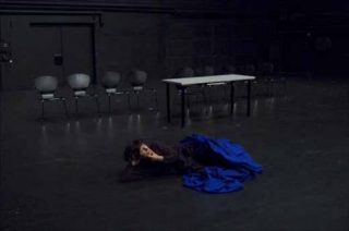 Esther Ferrer. J’étais invitée en Pologne, je ne me souviens plus quelle année, pour réaliser une performance. J’ai décidé de faire une version vidéo d’Un espace est fait pour être traversé, car je ne pouvais pas y aller. Puis j’ai modifié la vitesse et cela a donné un effet très intéressant. Dans cette performance, je parcours un espace dans sa longueur de manières différentes: au pas de cours, en rampant, avec une chaise etc.