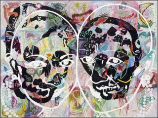 — Schwanzmädchen, série «Transformer – Performer», 2005. Huile et technique mixte sur toile. 150 x 200 cm.