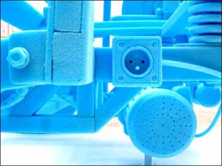 Car le programme de Berthier semble être de se glisser dans la peau d’un ingénieur fournissant, sous la forme de petits dessins explicatifs, quantités de bonnes idées pour améliorer notre quotidien, parmi lesquelles la Para site dont on peut voir le prototype grandeur nature…réalisée en matière éponge bleue ciel !