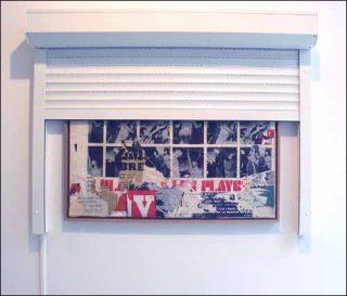 — Lever de rideau, 2004. Rideau électrique roulant stomfly à télécommande. 98 x 125 x 20 cm.