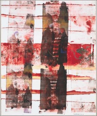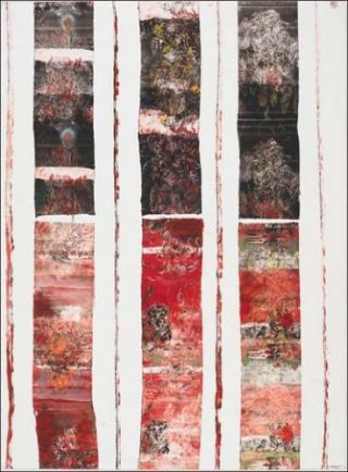 La vivacité et la surcharge caractéristiques des peintures de l’artiste s’y retrouvent. Mais la liberté qu’offrent ici le support et la technique semble donner libre cours à une virulence gestuelle qui révèle, comme autant de plaies vives, les traces de spectacles brûlants.