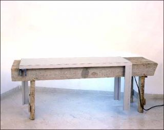 Pedro Cabrita Reis, Some Other Time, 2003. Table en bois, aluminium, table en verre et néon.