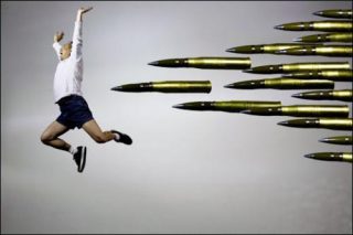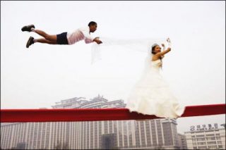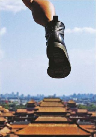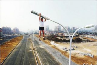 Par une simple retouche sur Photoshop, Li Wei efface les traces du matériel technique dont il s’est aidé lors de sa performance.