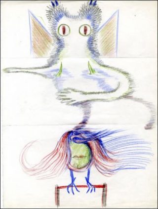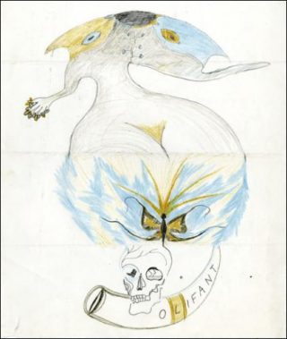 Enfin, une toile d’Adam Janes, dont le style est assez proche de l’écriture automatique surréaliste, laisse apparaître une figure féminine décapitée, tandis que Niki de Saint Phalle, victime d’inceste dans son enfance, se sert du Château de Gilles de Rais pour trouver un exutoire à ce trauma, en bombardant de peinture les figures paternelles qui composent son œuvre, à côté de poupons et de têtes de bébé.
