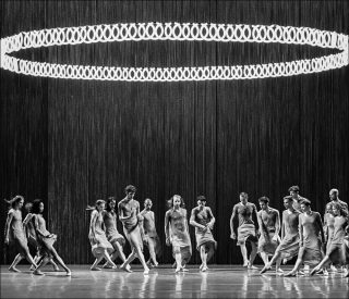 Il se dégage alors de la chorégraphie une impression de puissance et d’énergie qui accompagne l’évolution parfaitement cohérente des danseurs. Ces derniers font corps, formant une communauté liée, au rythme de la musique classique et électronique. La composition du musicien islandais Valgeir Sigurðsson et la mise en scène de Pieter C. Scholten ne manquent pas d’amplifier la présence de cette communauté humaine en cours de formation, alors qu’au-dessus de la scène, tourne un imposant anneau lumineux qui symbolise le cours du temps. Descendant lentement, et se posant en oblique sur la scène, il enserre les danseurs, puis remonte.