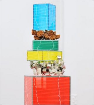 Depuis ses études au Goldsmiths College à Londres à la fin des années 90, Gary Webb est connu pour ses sculptures hybrides dans lesquelles sont fusionnées avec une grande liberté les références historiques, culturelles et matérielles. Ses sculptures se caractérisent par leurs compositions inattendues et contrastées, mi abstraites et mi figuratives, à la fois géométriques et organiques, mêlant les références modernistes à des motifs décoratifs kitsch. Ces apparentes contradictions qui cohabitent de manière déroutante et presque humoristique, s’accordent finalement dans l’esthétique joyeuse, colorée et ludique de Gary Webb.