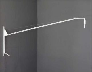 — Swivelling Wall Lamp, 2010. Potence. Tubes en acier cintrés, peinture blanche époxy et matériel électrique. 75 x 5 x 272 cm. Edition ToolsGalerie de 8 exemplaires, 2 E.A. et 1 prototype.