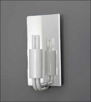 — Wall Lamp, 2010. Applique. Tubes en acier cintrés, peinture blanche époxy, miroir et matériel électrique. 29 x 13 x 12 cm. Edition ToolsGalerie de 8 exemplaires, 1 E.A. et 1 prototype.