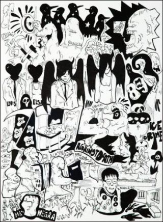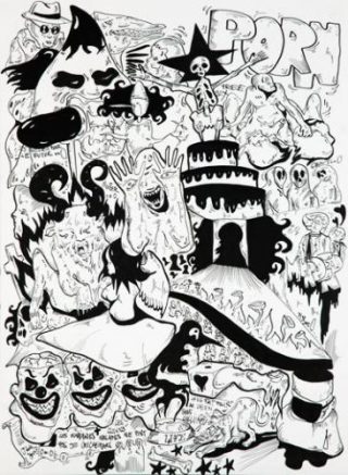L’artiste déploie dans ses dessins sur papier, fresques ou sculptures un vocabulaire faussement enfantin. Son univers est plein d’angoisse et d’humour, de cruauté et de magie. Son style s’inspire à la fois du «graffe», de la figuration enfantine et de la fresque.