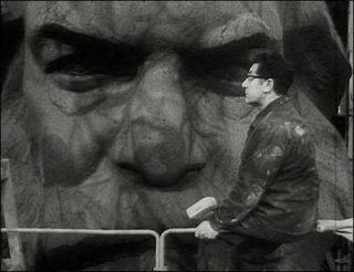 Pour le film The Head (2007), Deimantas Narkevicius a rassemblé des images d’archives montrant l’élaboration par le sculpteur Lew Kerbel d’un monument babylonien, inauguré en 1971 à Chemnitz, en Allemagne de l’Est, et dédié à l’auteur du Capital. Le portrait est ici totalement vidé de sa substance intime pour n’être que la vitrine d’une idéologie politique, le socialisme, par le biais d’une esthétique codifiée.