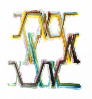 — Quatre fois trois.D, 2005. Acrylique et résine sur toile. 130 x 115 cm.