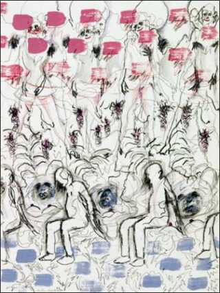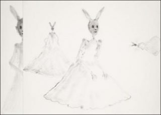L’exposition comprendra également la présentation de la série Strange wedding (2011), réalisée à la poudre de graphite sur papiers assemblés, dans laquelle errent des créatures silencieuses et hallucinées. Le tracé à la matière noire et poudreuse accentue le dessin de nuances de gris, et confirme, comme souvent dans l’œuvre de Christian Lhopital, ce point de rupture dans l’équilibre de la forme et de l’informe.