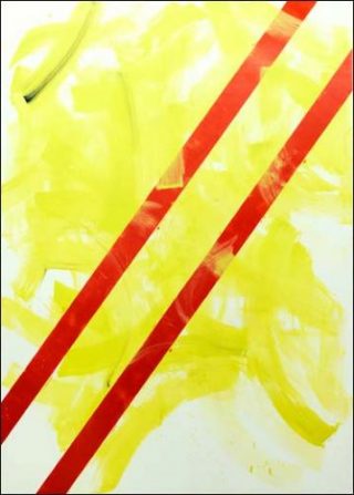 Kreuzung rappelle l’iconographie familière d’un déplacement rapide. Les bandes qui sont appliquées avec un rouleau à laque font penser à des traces de pneus telles que l’on peut en voir à un croisement (de rue). Ces lignes s’opposent à celles de Need for Speed, les unes attirant le regard à l’intérieur de l’espace, les autres l’emmenant à l’extérieur.