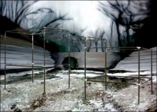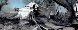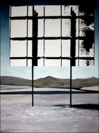 De même pour K, réminiscence d’un village dévasté dont une ou deux maisons ont plus profondément marqué l’esprit de l’artiste. Passager 2 va plus loin encore en plaçant un panneau noir et blanc au devant d’une plaine, faisant littéralement écran au reste de la toile.