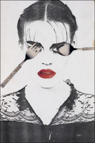Elle compose aussi une salade de mâche et de concombre qu’elle mélange avec des yeux et des bouches enduites de rouge. D’ailleurs, les globes oculaires et le rouge à lèvres deviennent peu à peu des motifs essentiels de ses photomontages — de véritables obsessions, même, dont elle ne se défera jamais.