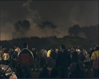 Il laisse pourtant le monde perplexe. Les sirènes hurlantes des voitures télécommandées tapies au sol, prêtes à vomir les scansions des projectiles dans Boom Biddy Bye Bye et, plus encore, le diptyque As the Veneer of Democracy Starts to Fade en sont les exemples les plus percutants. On y voit une foule de manifestants plongée dans un paysage irréel et surplombé par un soleil couchant (le soleil du Grand soir?). Un silence spectral couvre la scène, au loin, la fumée des projectiles s’évanouit.