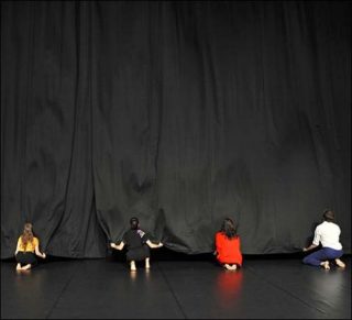 Il y a eu le corps habité par d’autres de Wonder, le corps aveugle mais empli de souvenirs du Renard ne s’apprivoise pas, le corps phosphorescent, tantôt présent, tantôt absent, de Cold Song. Des «outils de création» selon Mylène Benoit, qui aborde son nouveau projet de façon intuitive, progressant à tâtons avec ses interprètes. Accompagnés sur scène par les compositions électro-pop du groupe lillois Cercueil, cinq danseurs inventent un nouveau rapport à l’espace théâtral, ici transformé en organisme à échauffer : masser le tapis, épousseter les pendillons, réveiller l’acoustique. À chaque action sa portée fonctionnelle et son pendant magique, pour retrouver les mouvements mémorisés par le lieu. Adepte des formes hybrides, Mylène Benoit étudie une fois de plus les liens entre les individus et la musique, la lumière, les objets, respectant sa propre définition de la danse: «Un exercice de la chair et de l’esprit, un art plus puissant que ce que le corps seul peut produire». (LM Magazine)
