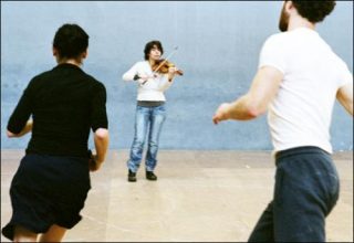Puis, dans une demi-obscurité, Keersmaker et Charmatz dansent sans musique pour être rejoints par la violoniste. Le spectacle est découpé en différents morceaux artistiques. Noir séparé de la lumière, musique séparée de la danse avec deux danseurs séparés d’eux-mêmes, chacun joue sa propre partition. Keersmaker met à nu l’artiste face à son Art. Et le public face à lui-même.