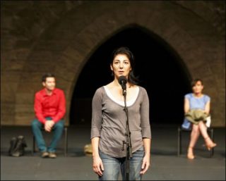 Isabelle Huppert donne un extrait du Médé de Jacques Lassalle et malgré la vidéo, malgré la projection sur la pierre, la subtilité de son jeu étourdit.