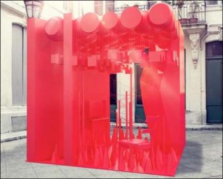 Les thèmes de la légèreté, de l’apesanteur et des frontières douces se traduisent toutes en un monde flottant. Ce monde reflète son environnement et réagira à la plus légère variation de temps, de lumière et de couleur. L’installation est semi-transparente, il n’y a aucune frontière absolue quant à son contexte, pas d’intérieur précis ni d’extérieur, pas de dessus ni de dessous – Seulement un dialogue visuel constamment redéfini entre l’objet et le spectateur, tant qu’une constante transformation de la cour au travers de l’image changeante des ombres et des faisceaux lumineux projetés sur le sol.
