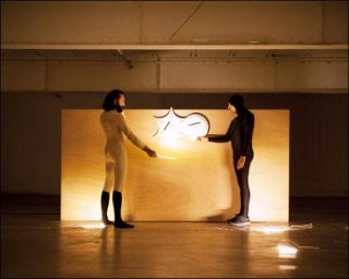 L’œuvre lui parle, il veut lui offrir le témoignage de son émotion. Entre le plasticien à la pointe de la modernité et la compositrice, pionnière de la musique électronique et aventurière du son, le courant passe. Elle livre à son admiration Occam I, sa première pièce pour harpe solo, composée en 2004. Il ouvre pour le spectateur une voie silencieuse vers l’œuvre, grave et envoûtante. Prélude en forme de petites scènes fragmentées, gestes du rituel et du quotidien ou trucages perceptifs, rameur insolite, cérémonie du thé, pendules lumineux, autant d’images réfractées d’un choc esthétique, la création visuelle entraîne le public puis s’efface pour laisser s’élever le son de la harpe, magnifié par le jeu de Rhodri Davies.