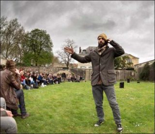 Il propose de réunir un public, des acteurs, des amateurs, des professionnels, autour d’une proposition qui invite à une mobilisation commune. Le fil conducteur de la pièce consiste en un texte préenregistré à l’intention du public, une partition suggérant une situation imaginaire à interpréter. Elle sera diffusée dans l’espace scénique et deviendra l’axe du travail réalisé sur scène par des interprètes professionnels et, peut-être, par des spectateurs. La partition changera à chaque représentation. Elle sera construire en rapport avec le jour spécifique du spectacle, le lieu, le temps, etc. Sur l’interprétation, titre de l’instant devient ainsi un protocole d’élaboration de situations théâtrales diverses.